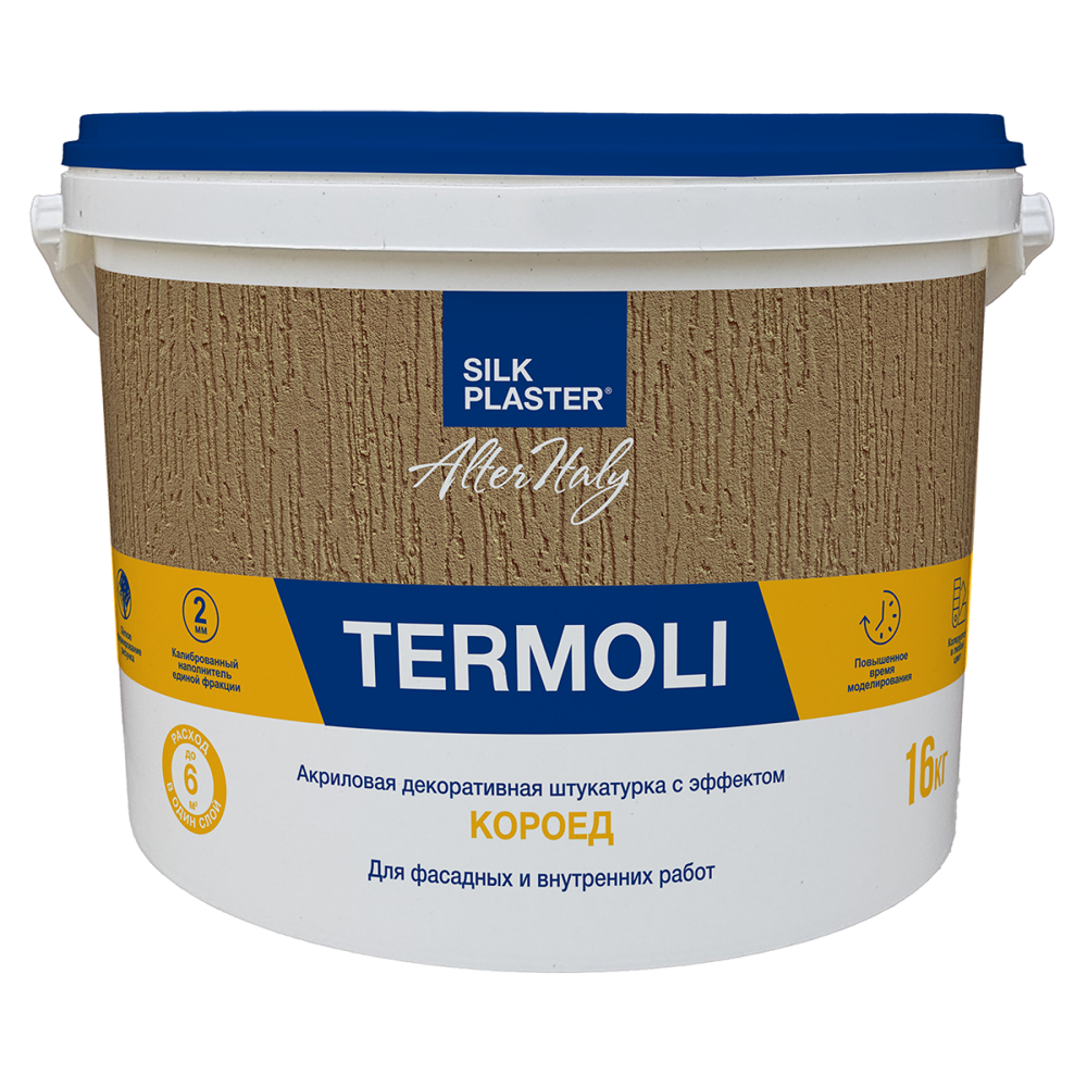 Оттенок Декоративная штукатурка AlterItaly TERMOLI / ТЕРМОЛИ с бороздчатой фактурой КОРОЕД для фасадных и внутренних работ. Готовый к применению материал для выполнения декоративных штукатурных работ. После высыхания покрытие обладает водо- и морозостойкостью, а также характеризуется высокой адгезией, стойкостью цвета, износостойкостью и простотой применения. |