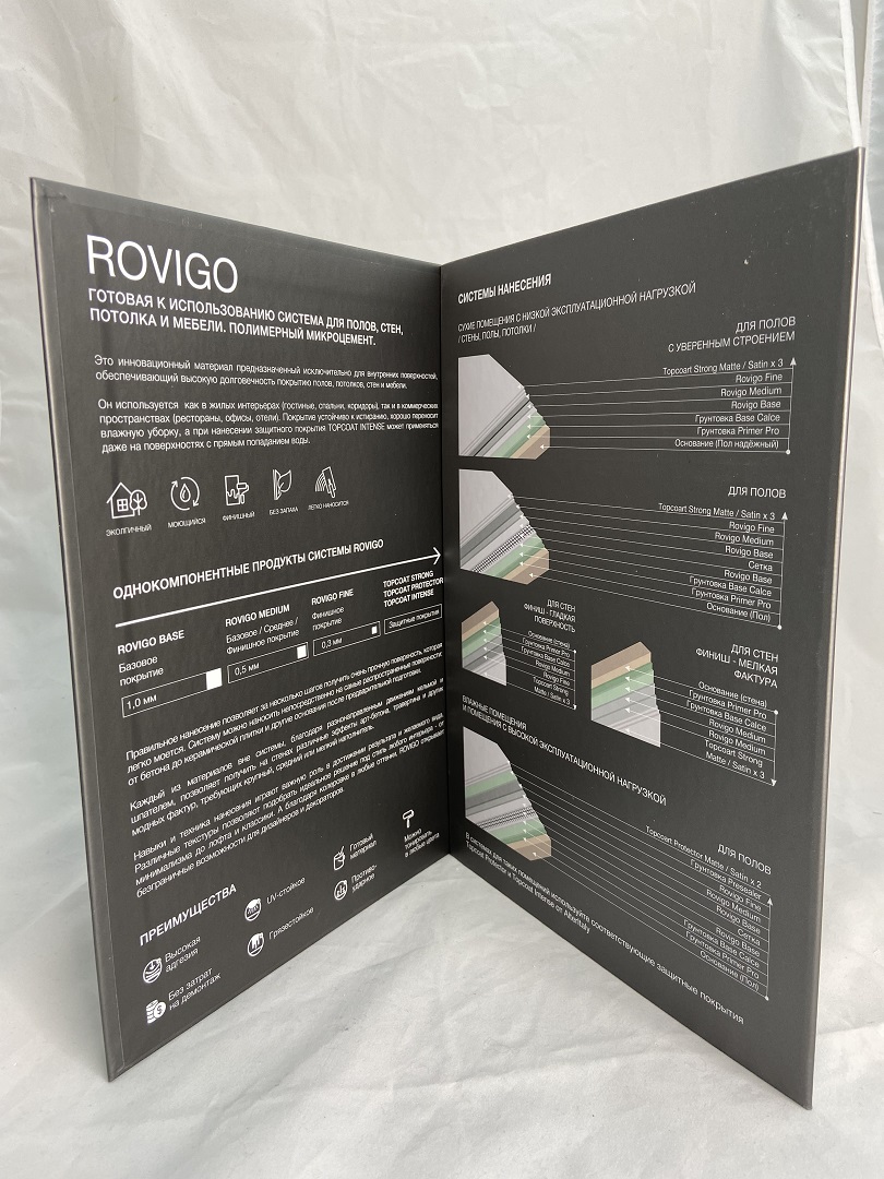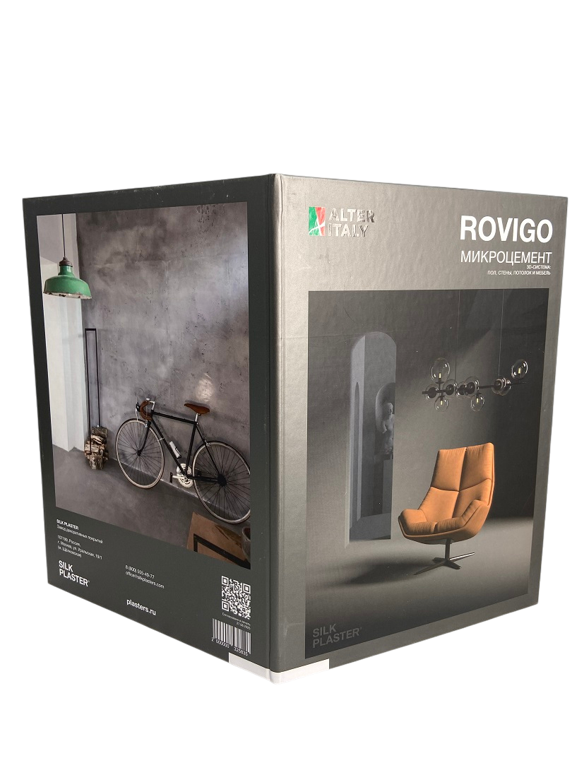 Покрытие Rovigo отличается высокой износостойкостью, влагостойкостью и универсальностью в применении. Оно подходит для стен, потолков, полов и различных архитектурных элементов как в жилых, так и в коммерческих интерьерах. Эффект микроцемента позволяет создать стильную и лаконичную поверхность с лёгкой индустриальной эстетикой.