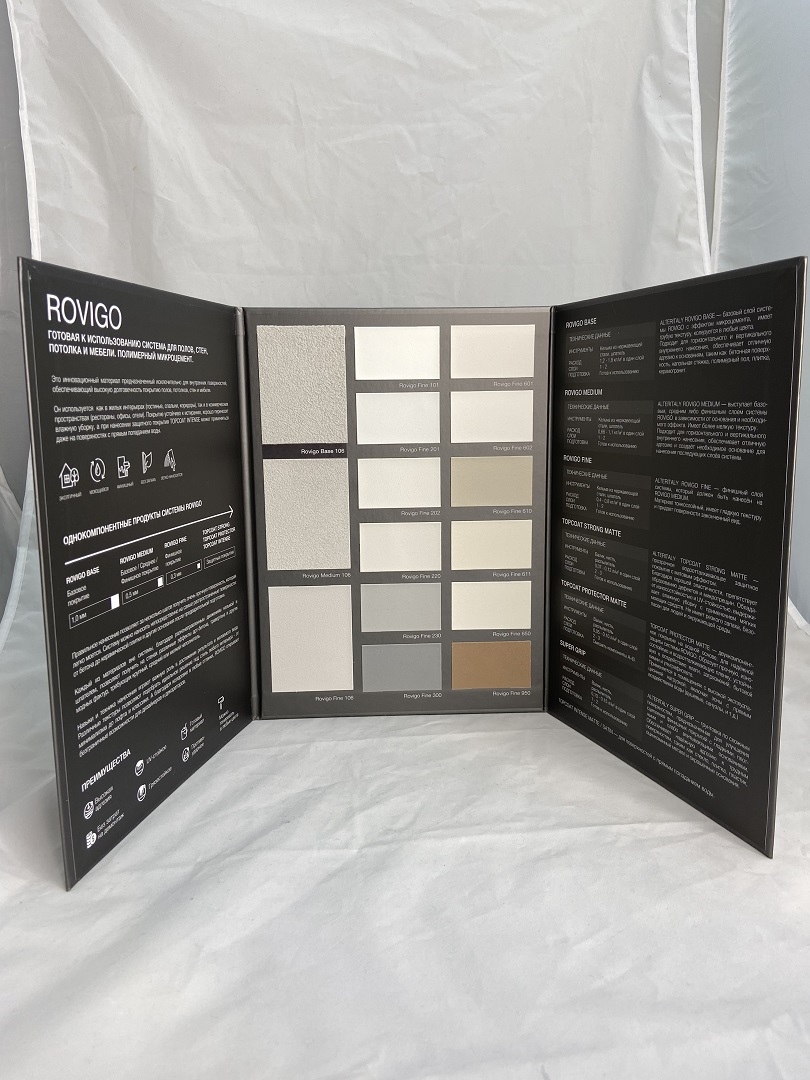 Каталог AlterItaly Rovigo представляет коллекцию декоративных покрытий с эффектом микроцемента, идеально сочетающих в себе элегантную простоту и современные тренды в дизайне интерьеров. В каталоге собраны натуральные образцы, каждый из которых демонстрирует уникальную фактуру и глубину цвета.