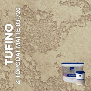 Фактурная декоративная штукатурка TUFINO на известковой основе с натуральным мраморным среднезернистым наполнителем предназначена для создания покрытий с эффектами травертина, известняка, микроцемента, оштукатуренной стены и другими. Материал на водной основе, без запаха, безопасен для людей и окружающей среды. В комплексе с защитным покрытием Topcoat MATTE штукатурка TUFINO создает влагостойкое, неприхотливое в эксплуатации, долговечное покрытие.