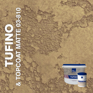 Фактурная декоративная штукатурка TUFINO на известковой основе с натуральным мраморным среднезернистым наполнителем предназначена для создания покрытий с эффектами травертина, известняка, микроцемента, оштукатуренной стены и другими. Материал на водной основе, без запаха, безопасен для людей и окружающей среды. В комплексе с защитным покрытием Topcoat MATTE штукатурка TUFINO создает влагостойкое, неприхотливое в эксплуатации, долговечное покрытие.