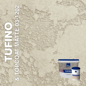 Фактурная декоративная штукатурка TUFINO на известковой основе с натуральным мраморным среднезернистым наполнителем предназначена для создания покрытий с эффектами травертина, известняка, микроцемента, оштукатуренной стены и другими. Материал на водной основе, без запаха, безопасен для людей и окружающей среды. В комплексе с защитным покрытием Topcoat MATTE штукатурка TUFINO создает влагостойкое, неприхотливое в эксплуатации, долговечное покрытие.