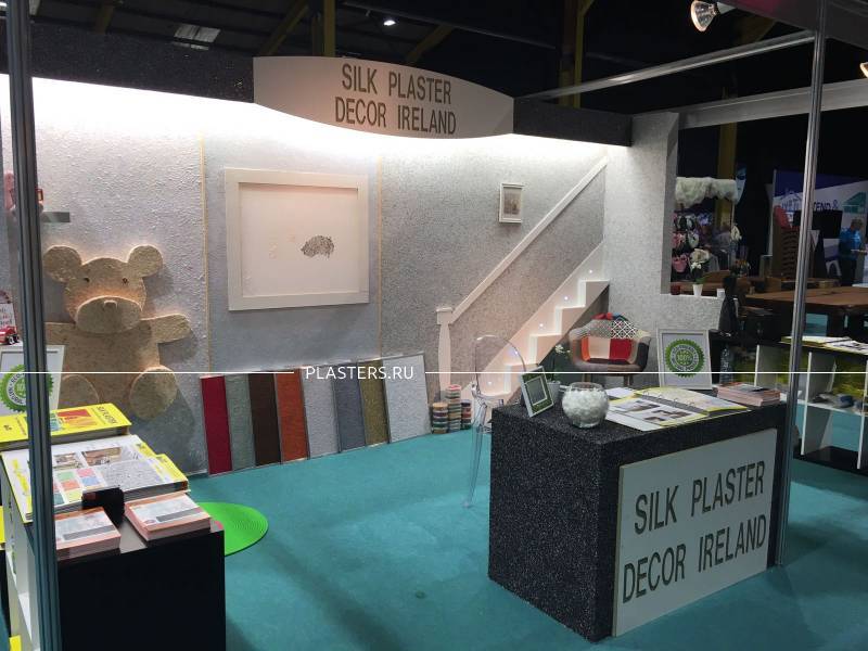 Красивый стенд, оформленный жидкими обоями, представляет шёлковую декоративную штукатурку SILK PLASTER в лучшем свете. Посетители выставки обращают внимание на наш материал, а активные менеджеры подробно рассказывают и показывают все преимущества жидких обоев SILK PLASTER.