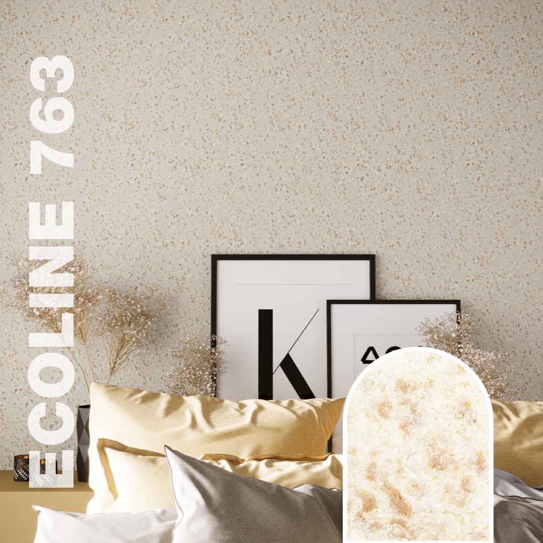 ECOLINE / ЭКОЛАЙН – жидкие обои с приятной хлопковой поверхностью и выразительным рельефом, с добавлением золотистых или серебристых блесток. Мягкое и «воздушное» покрытие с ECOLINE привнесет в ваш интерьер атмосферу уюта и гармонии, подарит ощущение тепла и комфорта.