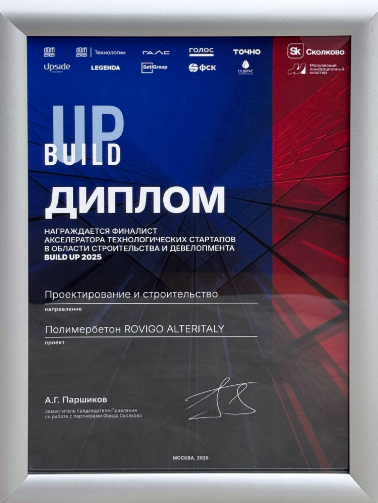 С гордостью сообщаем, что наш инновационный готовый к применению микроцемент ROVIGO (полимербетон), произведённый на собственном заводе SILK PLASTER, стал финалистом престижной программы Build UP 2025, организованной фондом «Сколково». Из более чем 800 заявок экспертное жюри отобрало всего 25 проектов — и ROVIGO вошёл в число лучших.