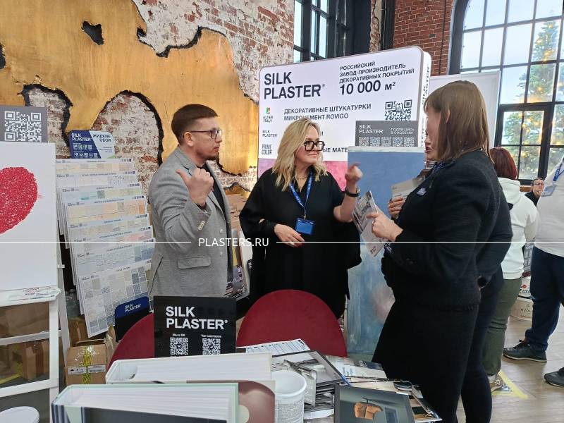Компания Silk Plaster выступила активным участником форума, представив свою тренд-зону и практические демонстрации возможностей современных декоративных покрытий.