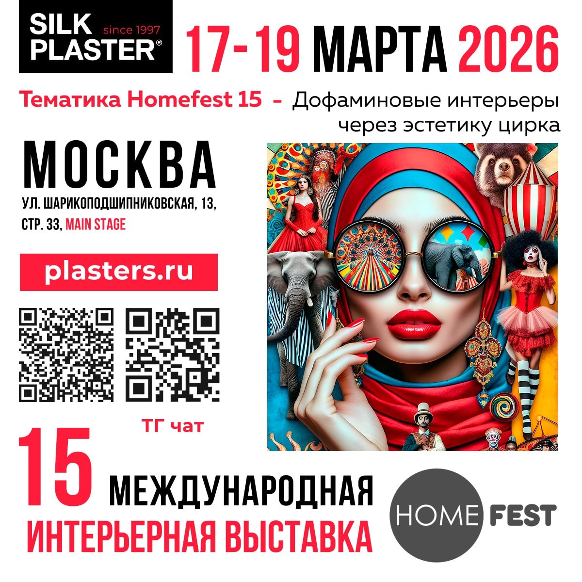 Завод-производитель SILK PLASTER приглашает вас на 15-ю Международную интерьерную выставку HomeFest, которая пройдет с 17 по 19 марта 2026 года, в пространстве «Main Stage» по адресу: г. Москва, ул. Шарикоподшипниковская, 13, стр. 33.