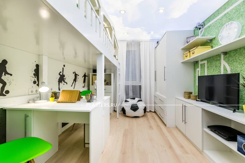 Можно ли в 12-метровой комнате построить футбольный стадион? Легко, было бы желание. А его у братьев-близнецов Саши и Леши хоть отбавляй. Ребята - заядлые футболисты и в будущем мечтают стать вторыми братьями Березуцкими, поэтому дизайнеру Рине Федоровой придется хорошенько подумать, как в комнате будущих звезд футбола создать комфортные условия для спорта, учебы и отдыха.