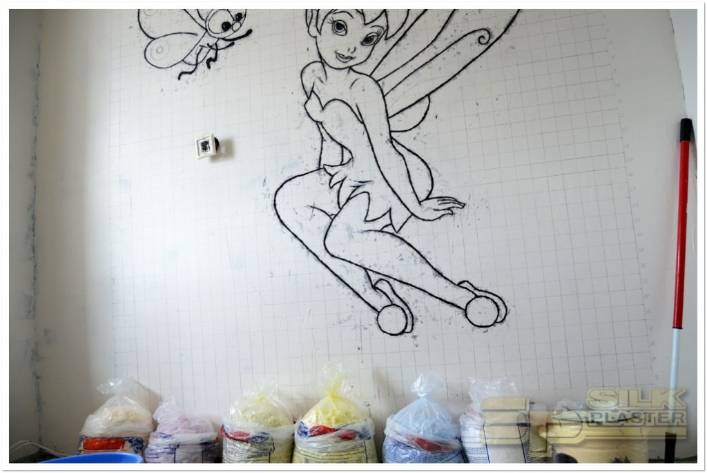 Сначала муж подготовил стены - зашпаклевал, загрунтовал. Я выбрала картинку в интернете. Переносили картинку на стену старым добрым способом, по клеточкам. Справится даже ребенок! Самым трудоемким оказалось нанесение контура. Процесс занял 2 вечера. «Раскрашивали» картину постепенно, цвет за цветом, мешок за мешком. Результат оправдал все ожидания и даже больше!