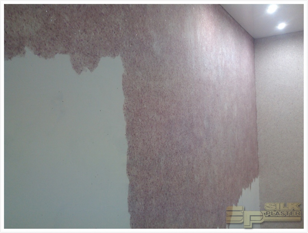 Ну и наконец наступило время приступать к самому интересному – отделочным работам. После просмотра различных вариантов отделки, стены решили декорировать с помощью шёлковой декоративной штукатурки SILK PLASTER. Этот отделочный материал привлёк своей экологичностью и большим разнообразием выбора цвета и фактуры. По цене, что также немаловажно, вполне нам подошёл. А учитывая, что с его нанесением планировалось справиться самостоятельно, получался вполне недорогой вариант. Выбрали тему оформления стены и отправились закупать всё необходимое: грунтовку SILK PLASTER, шёлковую штукатурку необходимых цветов (очень понравились коллекции Прованс и Ист), блёстки для придания комнате уюта и праздничности, и кельму для нанесения.