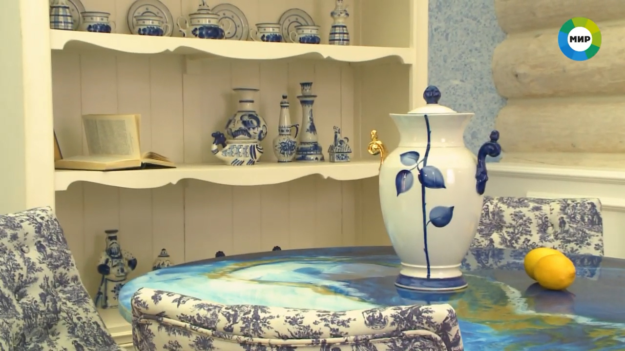 Оригинальная гостиная в стиле русской усадьбы и цветовой палитре «Гжель» готова! Интересно, что скажут гости программы?