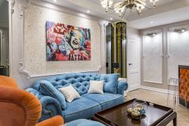 Проект "Клубная классика" стал яркой демонстрацией всех преимуществ декоративной шёлковой штукатурки в сочетании с лепниной и другими декоративными покрытиями. Дизайнеры легко подобрали из большого каталога компании нужный вид, который без проблем подошел к мебели, текстилю и общему концепту оформления помещения. В этот раз дизайнеры выбрали вид из новой коллекции Эколайн коричневого цвета.