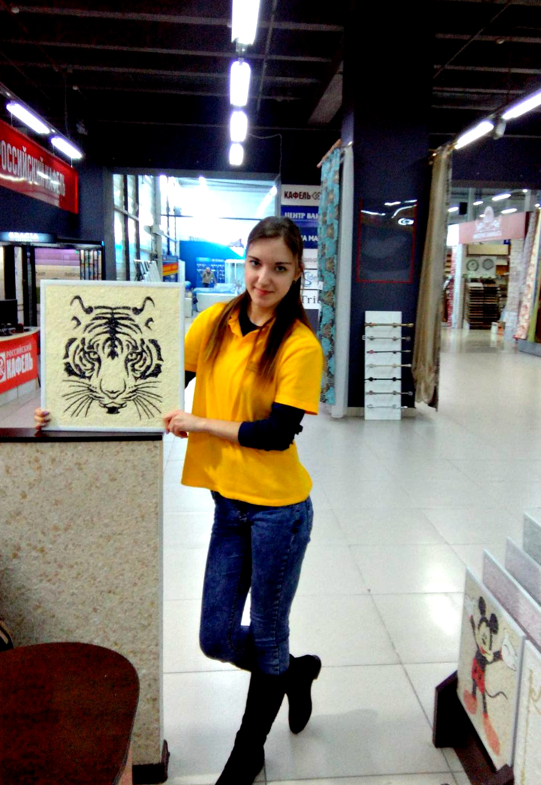 Работа с материалом не доставляет никаких трудностей, большой плюс в том, что материал может храниться в разведенном виде достаточно долго(около двух недель). В выборе оттенков так же не возникает сложностей, так как выбор достаточно большой, как в плане цвета, так и по структуре! Тем более, что коллекции можно смешивать между собой и получать совершенно новые оттенки и структуру, что и было сделано при создании нескольких картин. Творческий процесс, в свою очередь, не ограничился на одном рисунке. Дальше начинала придумывать что нибудь еще более интересное и креативное. Создавались картины постепенно, одна за одной, а вместе с картинами в нашем отделе появился Снеговик, сделанный тоже из жидких обоев! Хочется отметить, что такой подход к материалу воспринимается клиентами очень положительно, соответственно многие из них тоже начинают смотреть на жидкие обои не только как на отделочный материал, но и как материал для творчества!