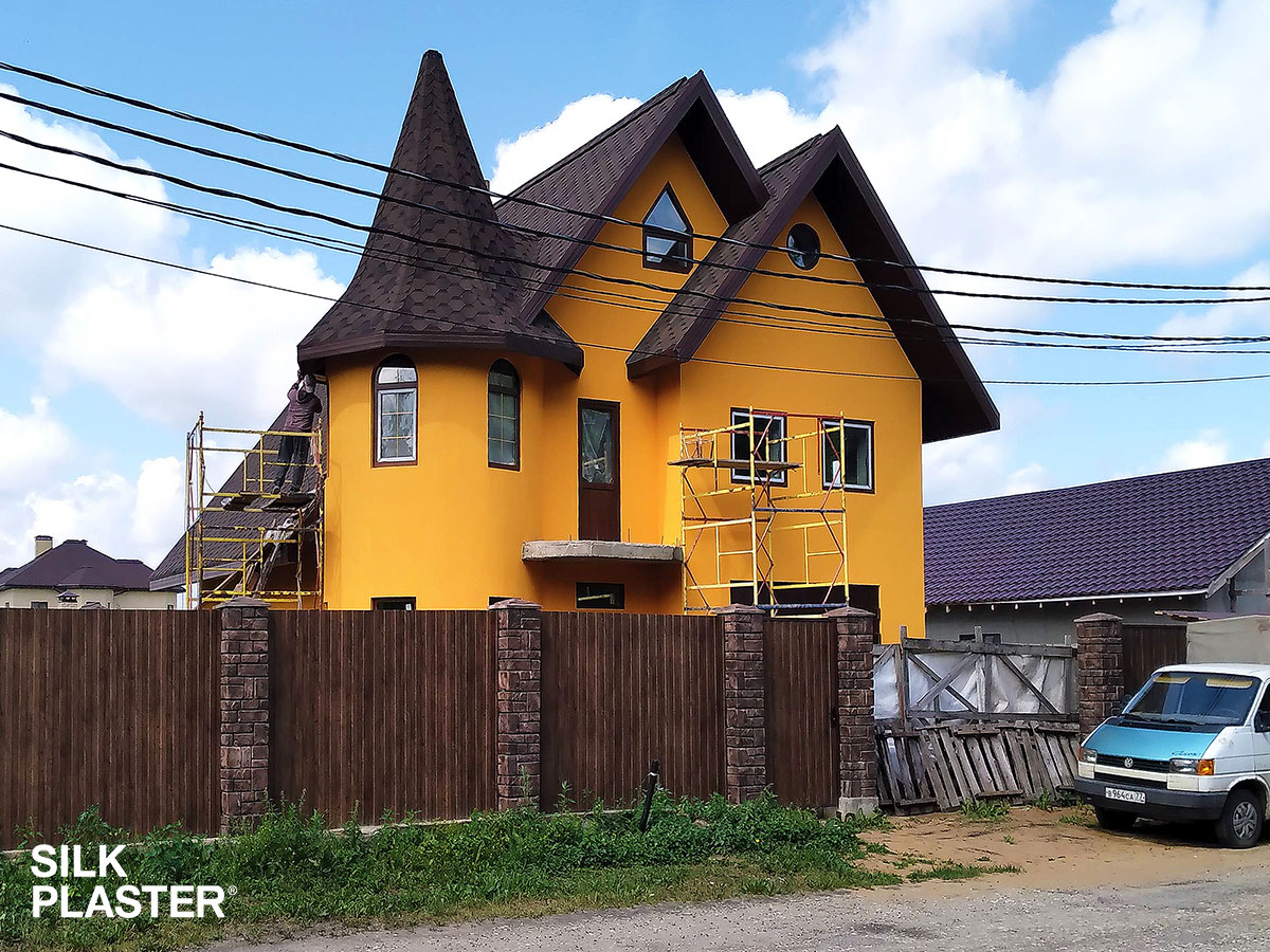 Выбрал цвет "Манго" и не пожалел! Купил 40 банок уже заколерованной штукатурки, 30 шт. ушло на дом и 10 шт. на баню. Покрытие качественное, мастера сделали всё по технологии! Я доволен, рекомендую!».