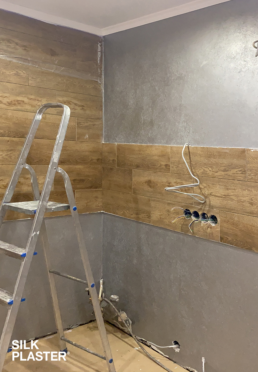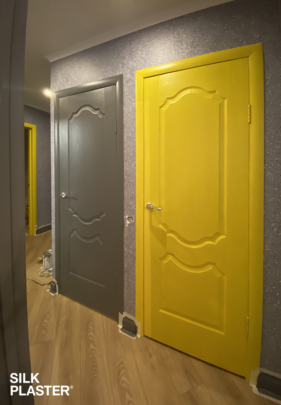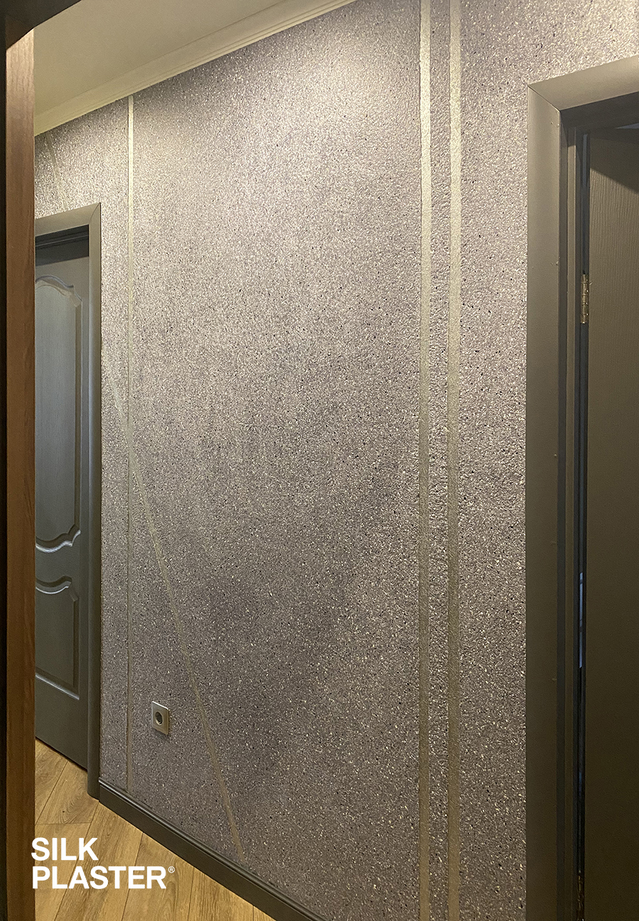 С кухни у нас осталось немного штукатурки. И как говорится, не пропадать же добру. И я решила создать из неё полоски-элементы декора в коридор. Получилось что-то типа латунных вставок, только серебряные ) На мой взгляд - очень круто! Эти две коллекции совсем друг с другом не спорят, а только дополняют, не смотря на то, что Ист - мягкие обои, а Бриз - твёрдая штукатурка. Так что, не бойтесь экспериментировать и сочетать, и у вас получится особенный и индивидуальный интерьер. С Silk Plaster нет границ вашей фантазии!
