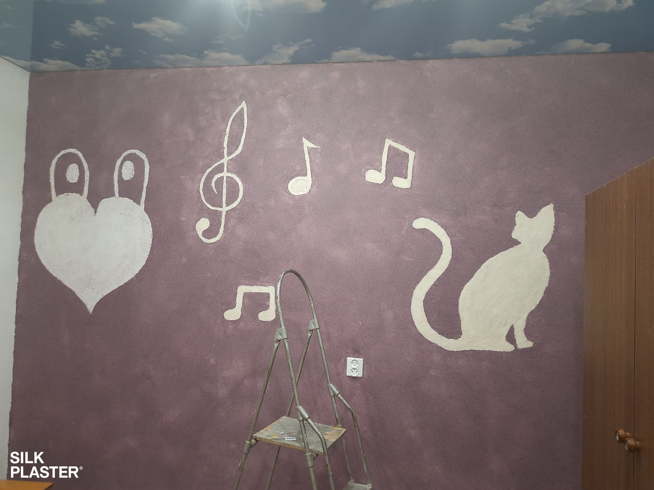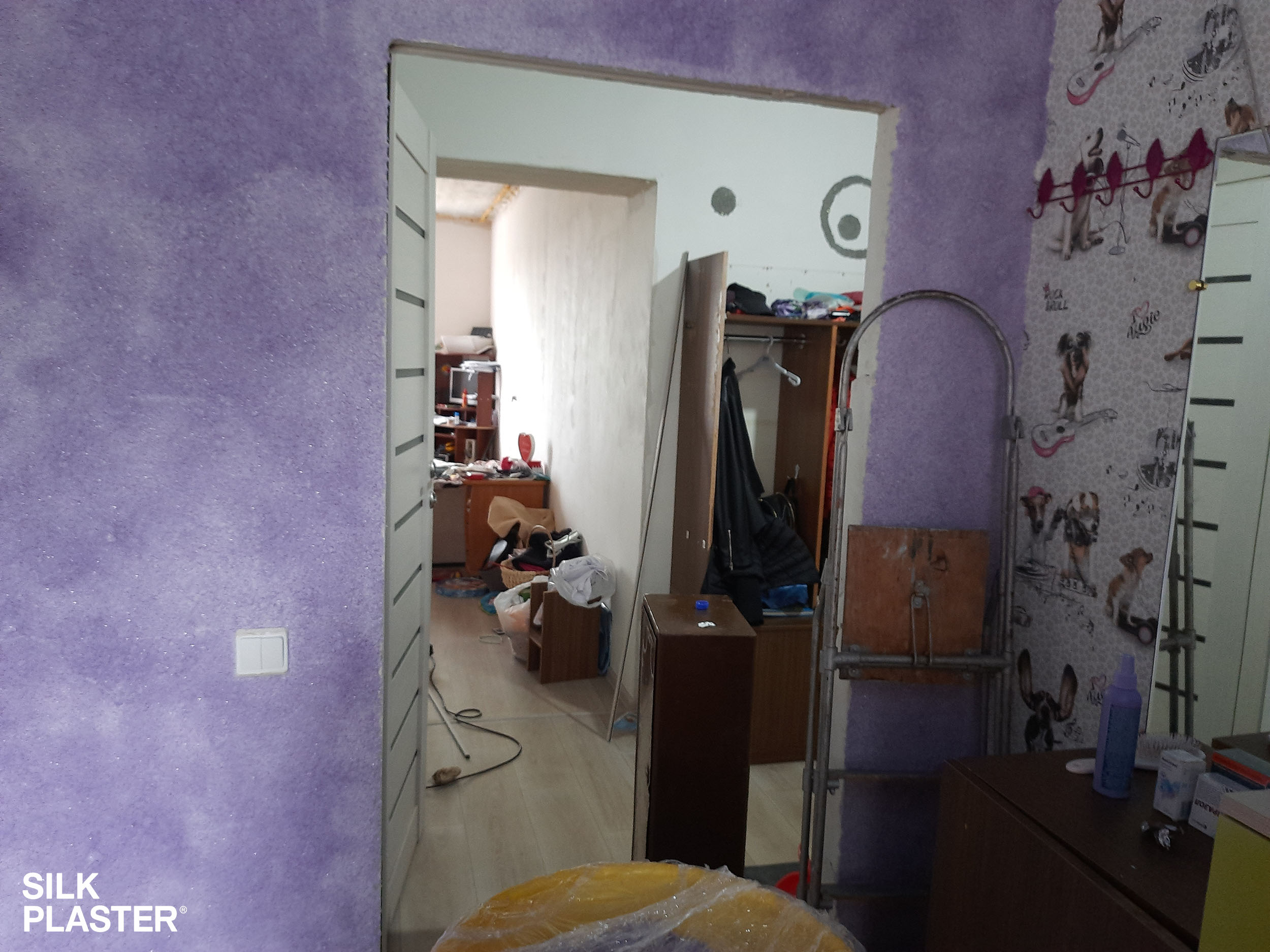 Жидкими обоями первый раз делала кухню, понравилось и решили детскую тоже сделать. Понравилось то, что легко наносить и можно ремонтировать. Даже дочь помогала.