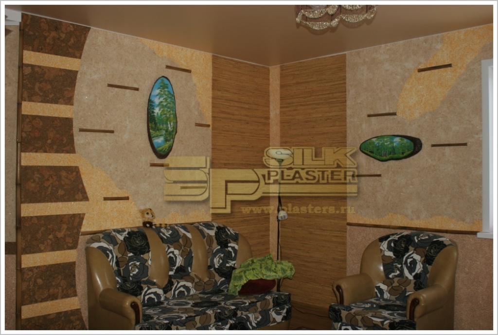Шелковая штукатурка Silk Plaster - это отличный материал для нашего нового дома – не потрескается, не боится перепадов температур, можно реставрировать (теперь картины, которые ожидают своей очереди, появится на стенах, я могу вешать и перевешивать сколько угодно), теплый, экологически чистый, нет швов. Что-то если не перечислил, не страшно, каждый, я думаю, нашел что-то свое в этом материале. За штукатуркой Silk Plaster, уверен, будущее. Ну, все, остановите, меня…