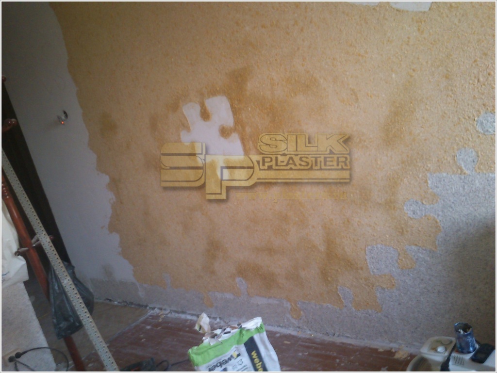 Дальше-больше, удалили старые обои, загрунтовали всё, откосы сделали из гипсокартона, пригласили брата мужа -художника в душе, ну или в душе:-) Суть рассказали, он обрисовал шаблон пазла, вырезали из картона, нарисовали на стене. Купили заранее жидкие обои SILK PLASTER, и тут началось самое интересное, первый раз, в первый класс;-) делать-то не умеем, никто ни разу и не шпаклевал, замесили все в ванной, по пакетам разложили, утром все и началось. Наносим по тихой грусти всю массу, а самим интересно, что же из этого всего выйдет. По мере нанесения паника лютая, а вдруг не получится, нужно было доверить дело профессионалам, начало уже чуть высохло, а еще наносим обои, ощущение жуткое, один цвет нанесен. Обои высохли вроде ничего так ;-), наносим второй цвет дело кропотливое, но стоит того, раз уж взялись :-)