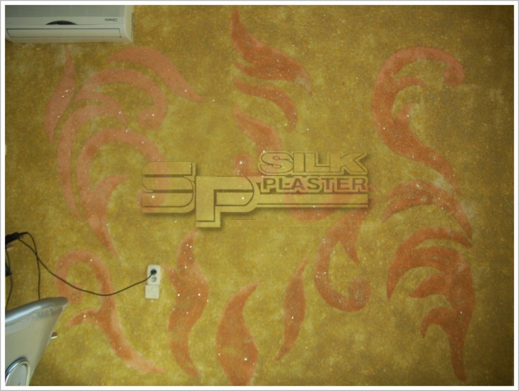 Название моей темы "От Москвы до самых до окраин..." Теперь и у нас в городе Учалы Республики Башкортостан теперь появилась шелковая декоративная штукатурка Silk Plaster. Я узнала о жидких обоях с октября 2011 года. Отделка стен обоями "Эйр Лайн" в коттедже, в парикмахерском салоне "Клеопатра" художественная отделка стен обоями "Виктория", применила новый метод отделки блестками: путем обдува феном блестки наносила на внутренние границы рисунка по еще влажным обоям, получился объемный "позолоченный" рисунок, всем понравилось...