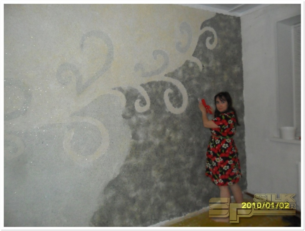 Здравствуйте! Начали делать ремонт и услышали про шелковую штукатурку. попробовали и у нас получилось. Не опытно и не умело, но все же! Решили в остальных комнатах тоже покрыть. Очень красиво, тепло в комнате стало и оригинально. Потом услышали про конкурс и тоже хотим попытать счастья. Может и тут повезет, как и с выбором обоев SILK PLASTER. Ремонт правда не доделали, но то что есть пришлем на вашу оценку. не судите строго – это наш первый самостоятельный ремонт.
